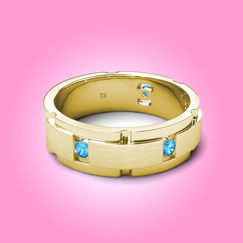 Round Blue Topaz 0.20 ctw Satin Finished Center and Polished Edges with Grooved Lines Men Wedding Band 10K Yellow Gold More Details ...
