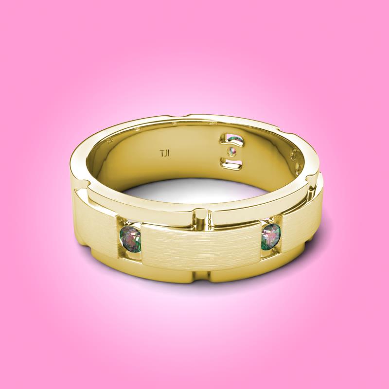 Round Created Alexandrite 0.27 ctw Satin Finished Center and Polished Edges with Grooved Lines Men Wedding Band 10K Yellow Gold More Details ...