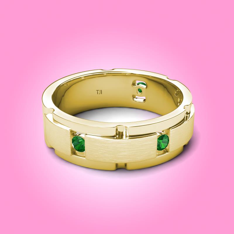 Wish To Look Stunning On Your Big Day, this Wedding Band of 0.27 ctw Round Green Garnet Satin Finished Center and Polished Edges with Grooved Lines, will do the magic for you.
