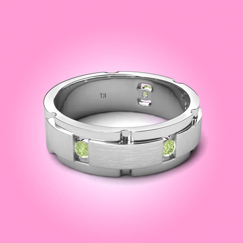 Wish To Look Stunning On Your Big Day, this Wedding Band of 0.27 ctw Round Peridot Satin Finished Center and Polished Edges with Grooved Lines, will do the magic for you.