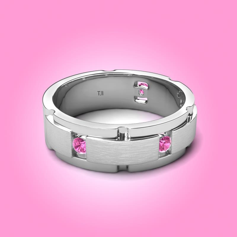Wish To Look Stunning On Your Big Day, this Wedding Band of 0.28 ctw Round Pink Sapphire Satin Finished Center and Polished Edges with Grooved Lines, will do the magic for you.