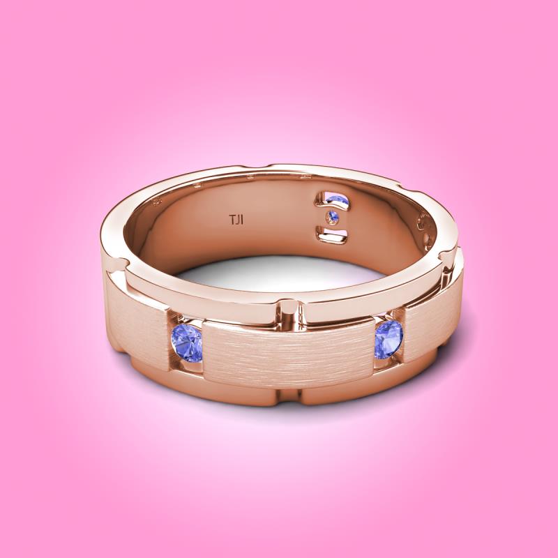 Round Tanzanite 0.24 ctw Satin Finished Center and Polished Edges with Grooved Lines Men Wedding Band 10K Rose Gold More Details ...