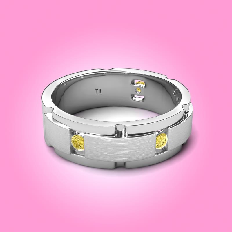 Wish To Look Stunning On Your Big Day, this Wedding Band of 0.28 ctw Round Yellow Sapphire Satin Finished Center and Polished Edges with Grooved Lines, will do the magic for you.