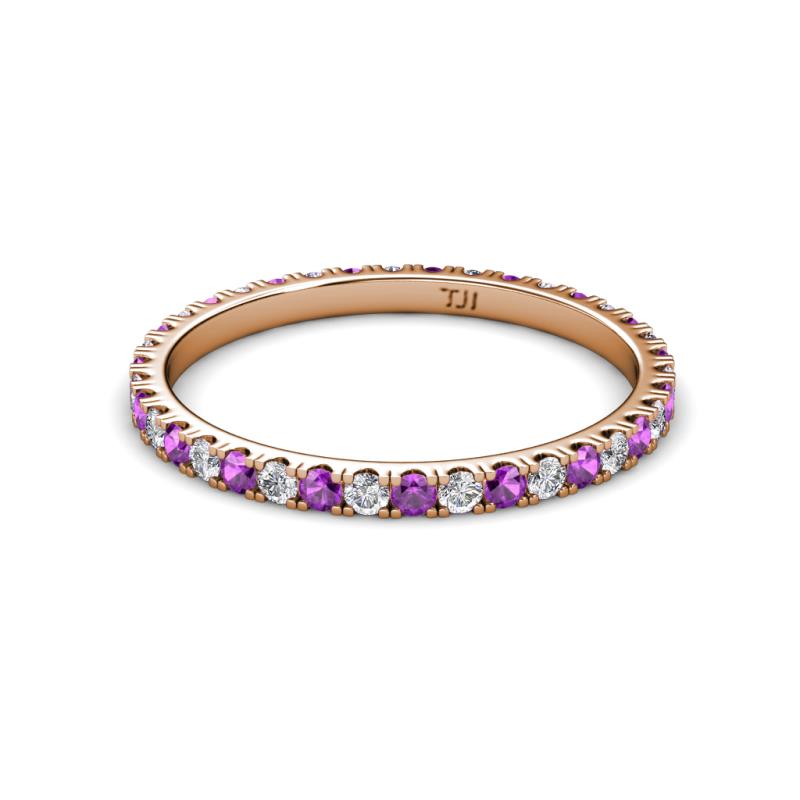 2.00 mm Round Amethyst and Lab Grown Diamond 0.73 ctw* French Set Womens Eternity Ring Stackable 10K Rose Gold More Details ...