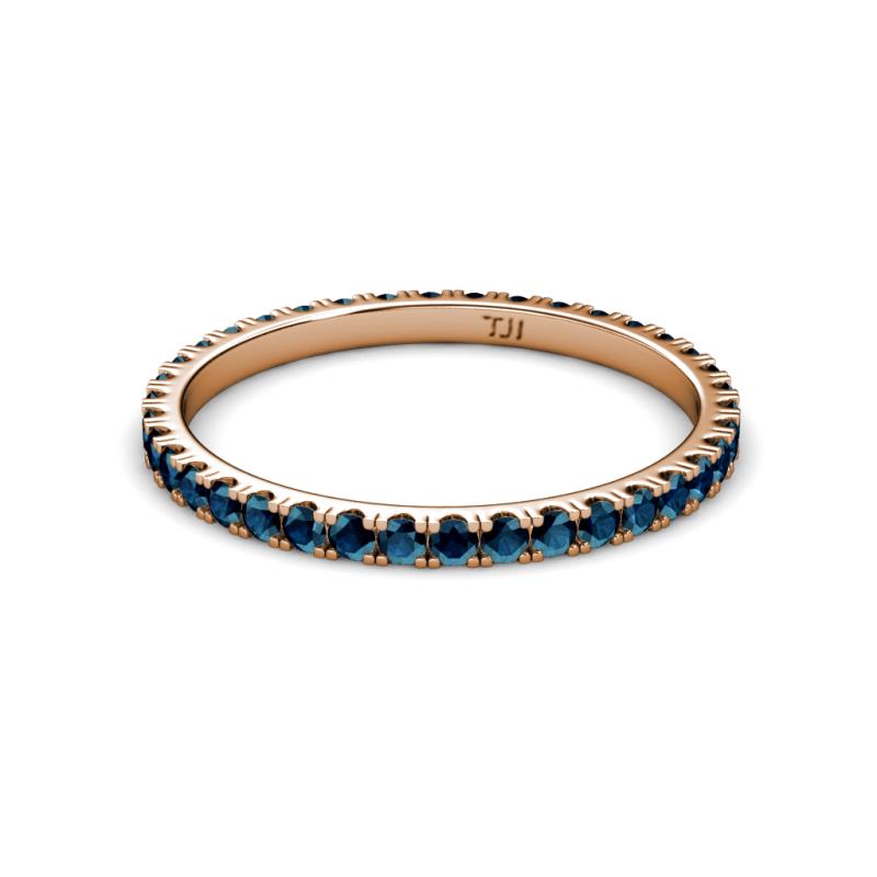 2.00 mm Round Blue Diamond 0.84 ctw* French Set Womens Eternity Ring Stackable 10K Rose Gold More Details ...