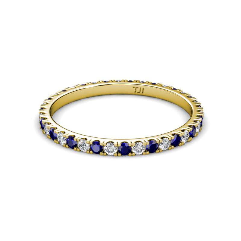 2.00 mm Round Blue Sapphire and Diamond 0.86 ctw* French Set Womens Eternity Ring Stackable 10K Yellow Gold More Details ...