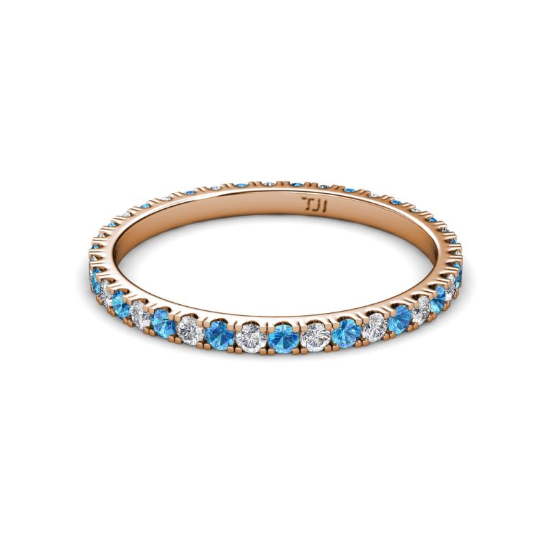 2.00 mm Round Blue Topaz and Lab Grown Diamond 0.77 ctw* French Set Womens Eternity Ring Stackable 10K Rose Gold More Details ...