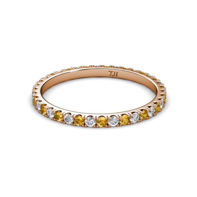 2.00 mm Round Citrine and Lab Grown Diamond 0.73 ctw* French Set Womens Eternity Ring Stackable 10K Rose Gold More Details ...