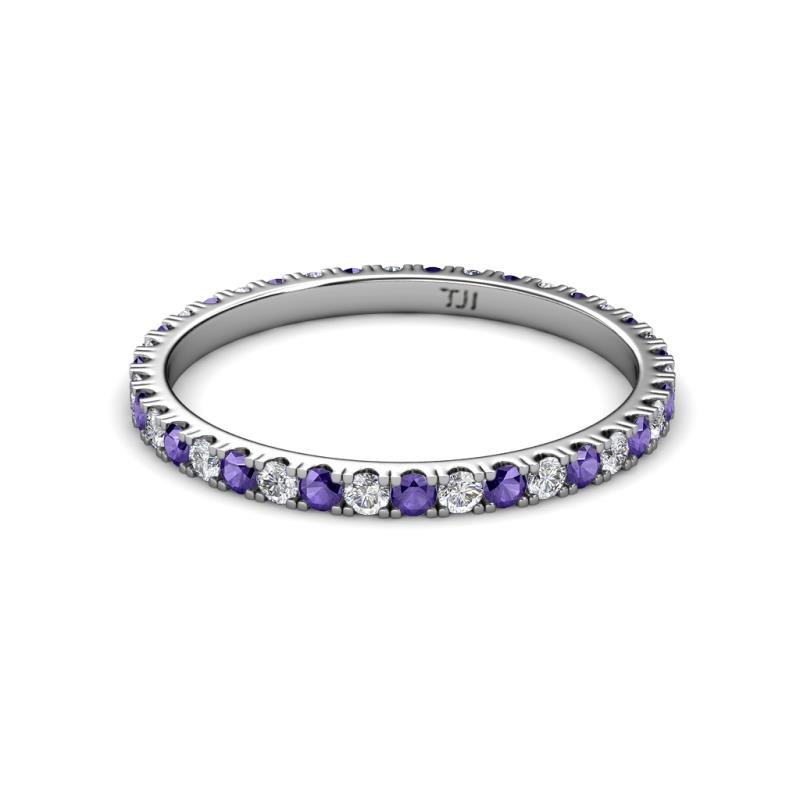 2.00 mm Round Iolite and Lab Grown Diamond 0.73 ctw* French Set Womens Eternity Ring Stackable Sterling Silver More Details ...