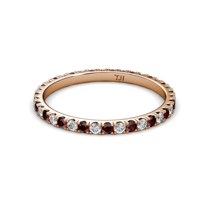 2.00 mm Round Red Garnet and Lab Grown Diamond 0.93 ctw* French Set Womens Eternity Ring Stackable 10K Rose Gold More Details ...