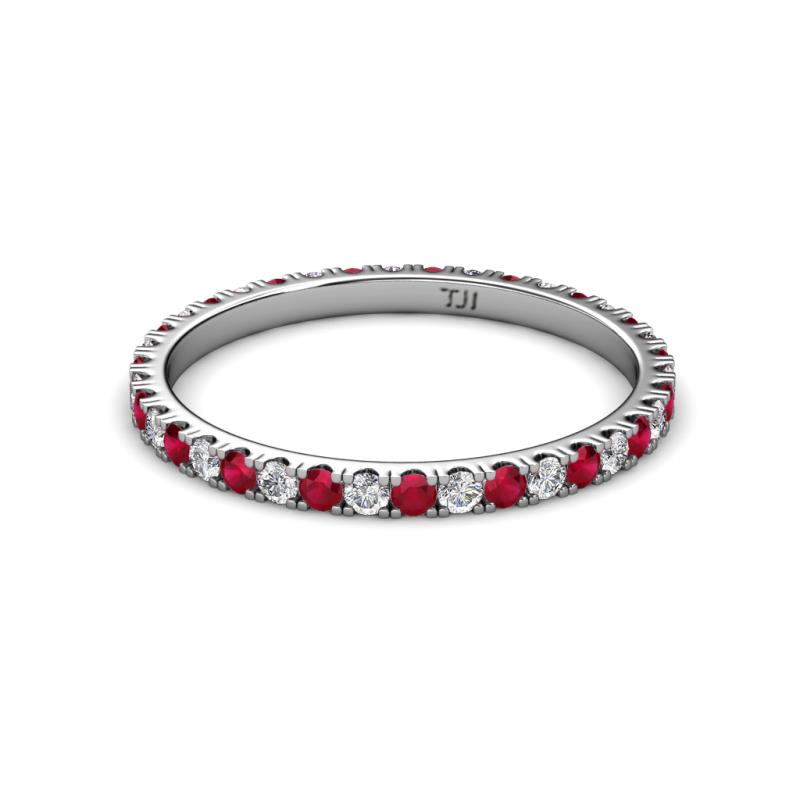 2.00 mm Round Ruby and Lab Grown Diamond 0.86 ctw* French Set Womens Eternity Ring Stackable Sterling Silver More Details ...