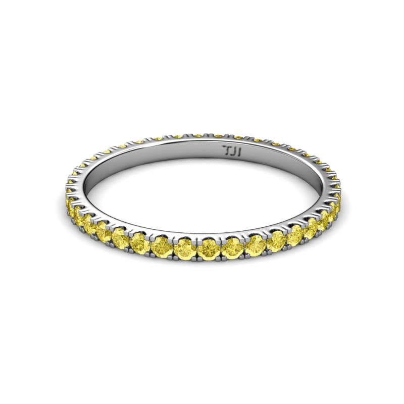 2.00 mm Round Yellow Sapphire 0.88 ctw* French Set Womens Eternity Ring Stackable 10K White Gold More Details ...