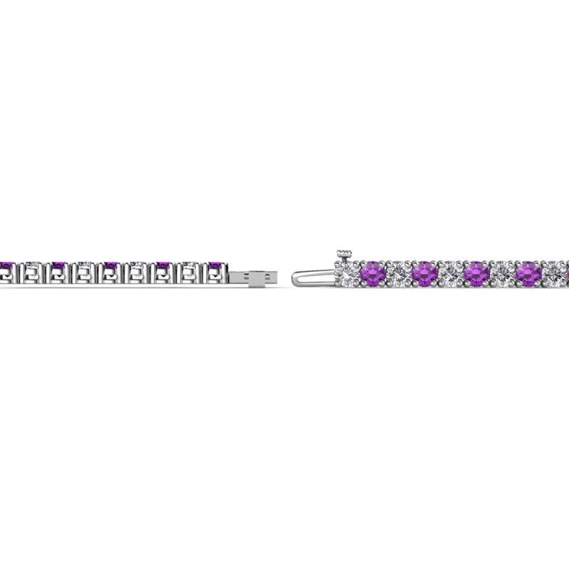 This Gleaming Tennis Bracelet will illuminate her wrist with the lavish look featuring interlinking Round Prong set of Shimmering Amethyst and Lab Grown Diamond secured using Box with tongue and safety clasp.