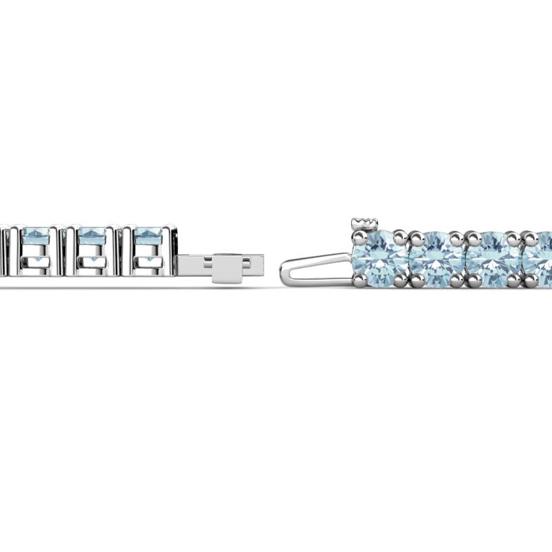 This Gleaming 8.20 cttw Tennis Bracelet will illuminate her wrist with the lavish look featuring interlinking Round Prong set of Shimmering Aquamarine secured using Box with tongue and safety clasp.