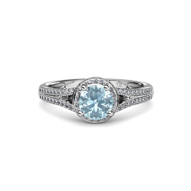 1 1/3 ctw Round Aquamarine and Diamond Womens Halo Engagement Ring 18K White Gold More Details ...