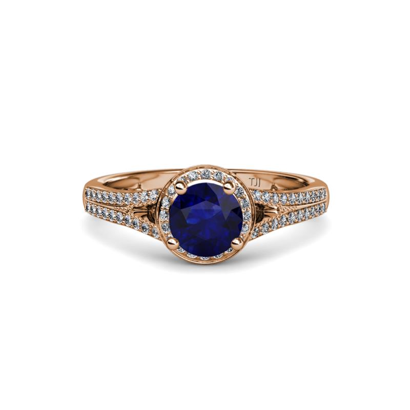 1 1/2 ctw Round Blue Sapphire and Diamond Womens Halo Engagement Ring 14K Rose Gold More Details ...
