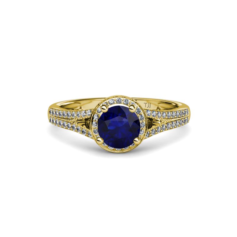 1 1/2 ctw Round Blue Sapphire and Diamond Womens Halo Engagement Ring 18K Yellow Gold More Details ...