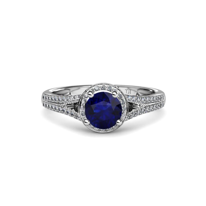 1 1/2 ctw Round Blue Sapphire and Diamond Womens Halo Engagement Ring Platinum More Details ...
