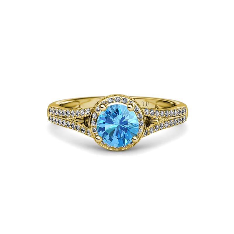 1 1/2 ctw Round Blue Topaz and Diamond Womens Halo Engagement Ring 14K Yellow Gold More Details ...