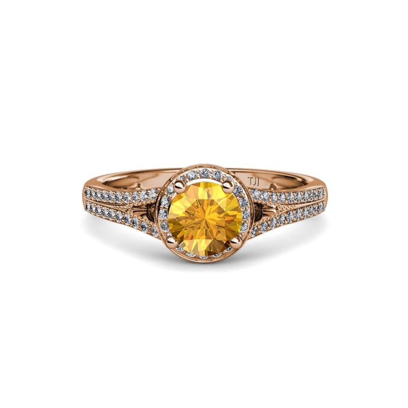 1 1/3 ctw Round Citrine and Diamond Womens Halo Engagement Ring 18K Rose Gold More Details ...