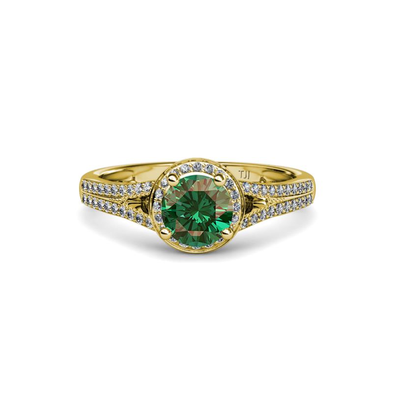 1 1/2 ctw Round Diamond and Lab Created Alexandrite Womens Halo Engagement Ring 14K Yellow Gold More Details ...