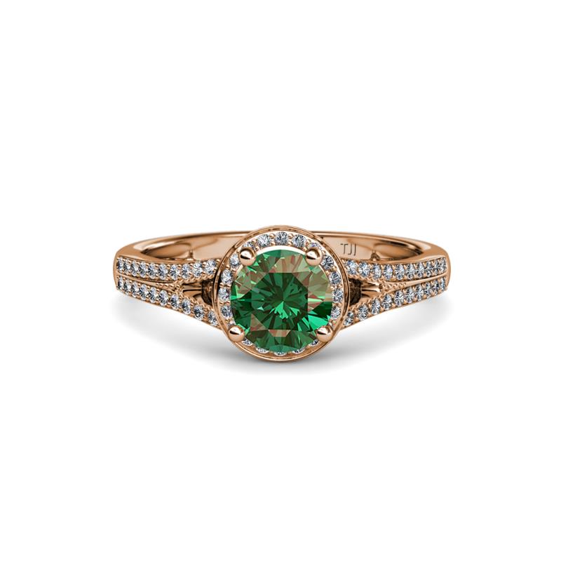 1 1/2 ctw Round Diamond and Lab Created Alexandrite Womens Halo Engagement Ring 14K Rose Gold More Details ...