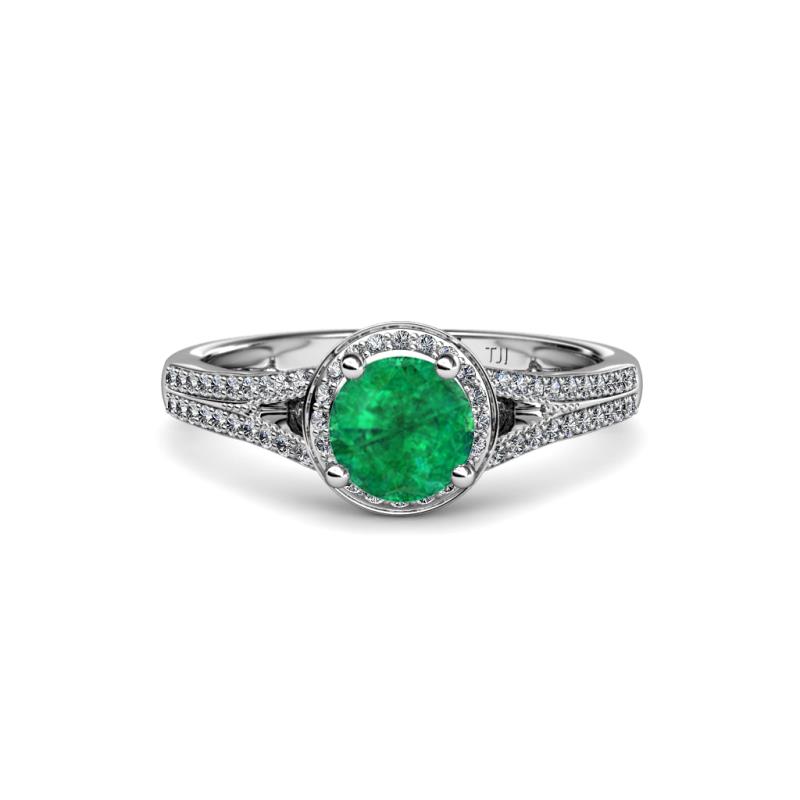1 1/4 ctw Round Emerald and Diamond Womens Halo Engagement Ring 14K White Gold More Details ...