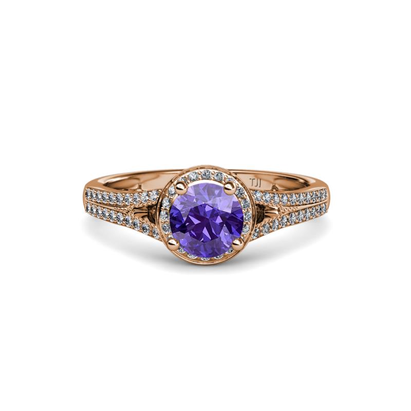 1 1/3 ctw Round Iolite and Diamond Womens Halo Engagement Ring 14K Rose Gold More Details ...