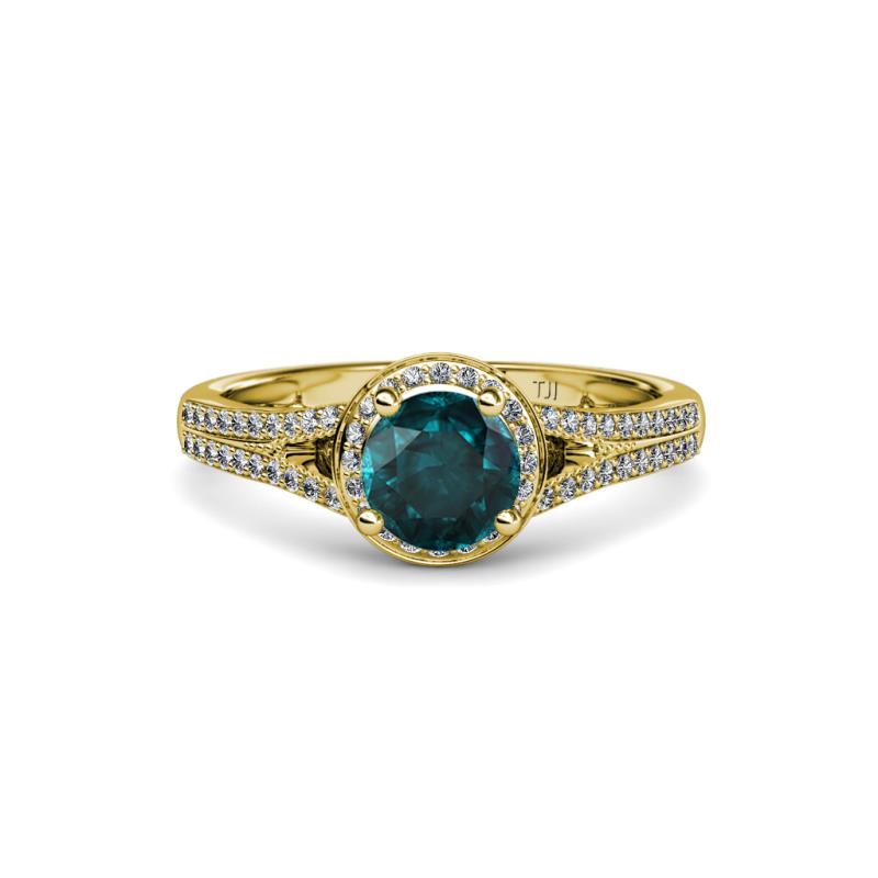 1 1/2 ctw Round London Blue Topaz and Diamond Womens Halo Engagement Ring 14K Yellow Gold More Details ...