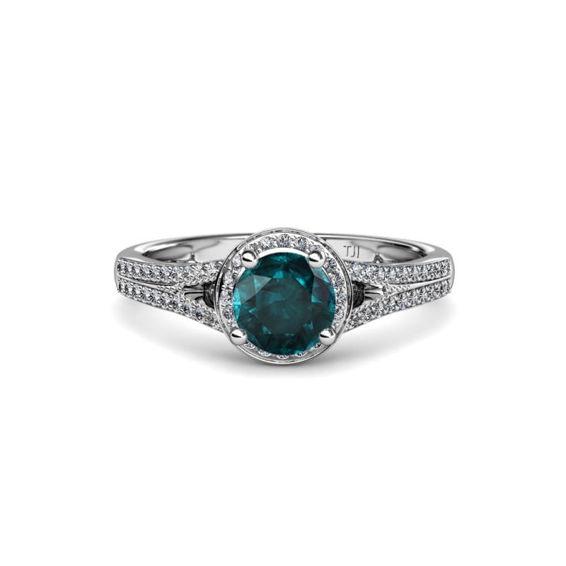1 1/2 ctw Round London Blue Topaz and Diamond Womens Halo Engagement Ring 18K White Gold More Details ...
