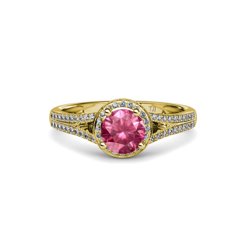 1 1/3 ctw Round Pink Tourmaline and Diamond Womens Halo Engagement Ring 14K Yellow Gold More Details ...