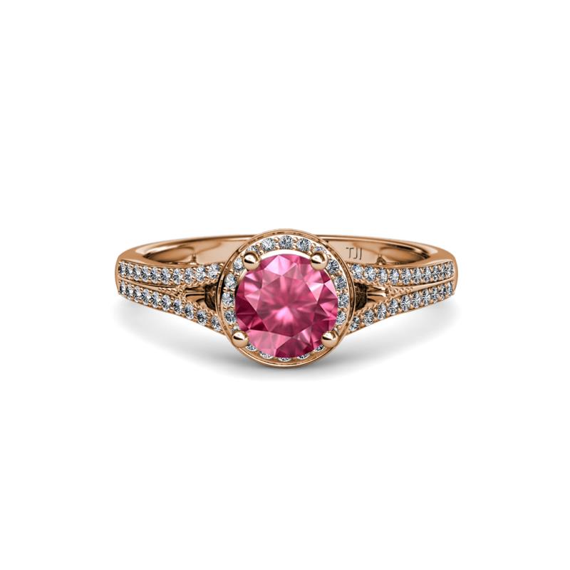 1 1/3 ctw Round Pink Tourmaline and Diamond Womens Halo Engagement Ring 18K Rose Gold More Details ...