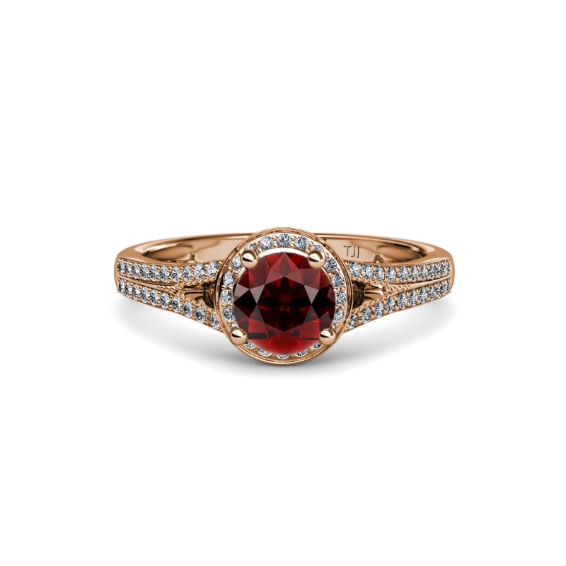 1 1/2 ctw Round Red Garnet and Diamond Womens Halo Engagement Ring 14K Rose Gold More Details ...