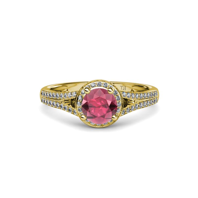 1 1/2 ctw Round Rhodolite Garnet and Diamond Womens Halo Engagement Ring 14K Yellow Gold More Details ...