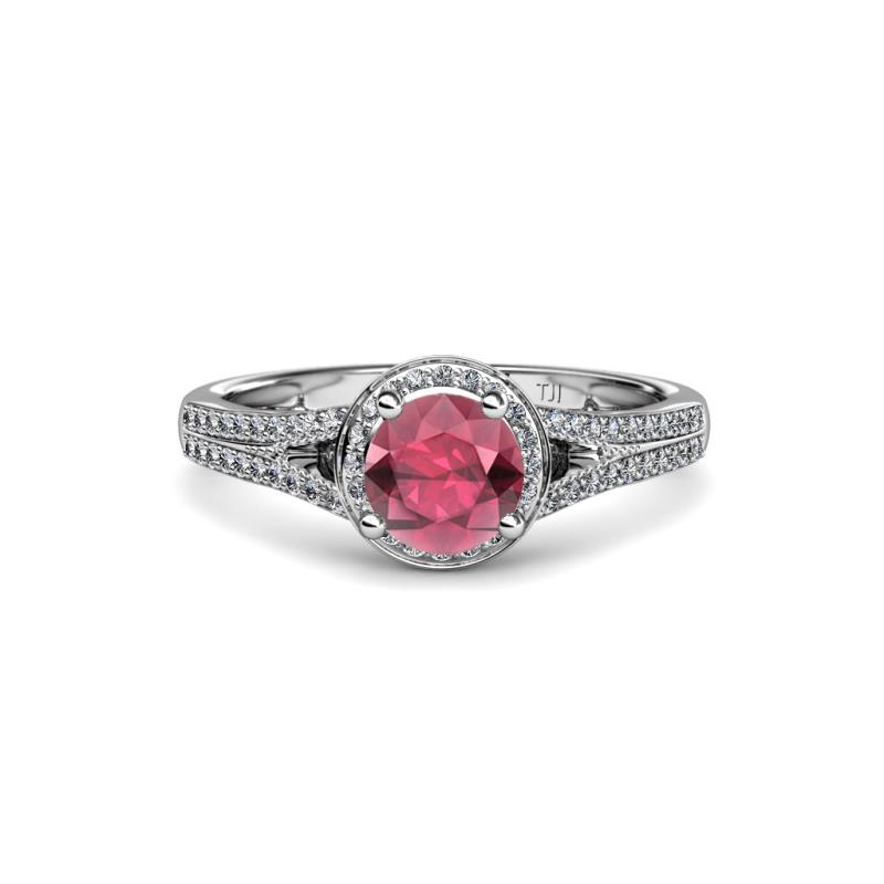 1 1/2 ctw Round Rhodolite Garnet and Diamond Womens Halo Engagement Ring Platinum More Details ...
