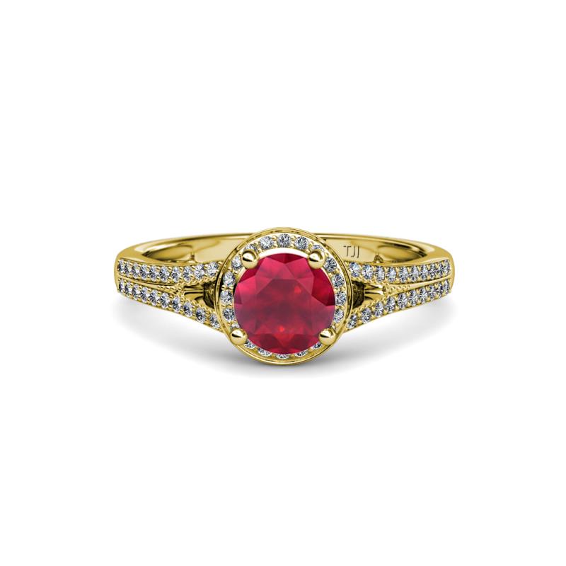 1 1/2 ctw Round Ruby and Diamond Womens Halo Engagement Ring 14K Yellow Gold More Details ...