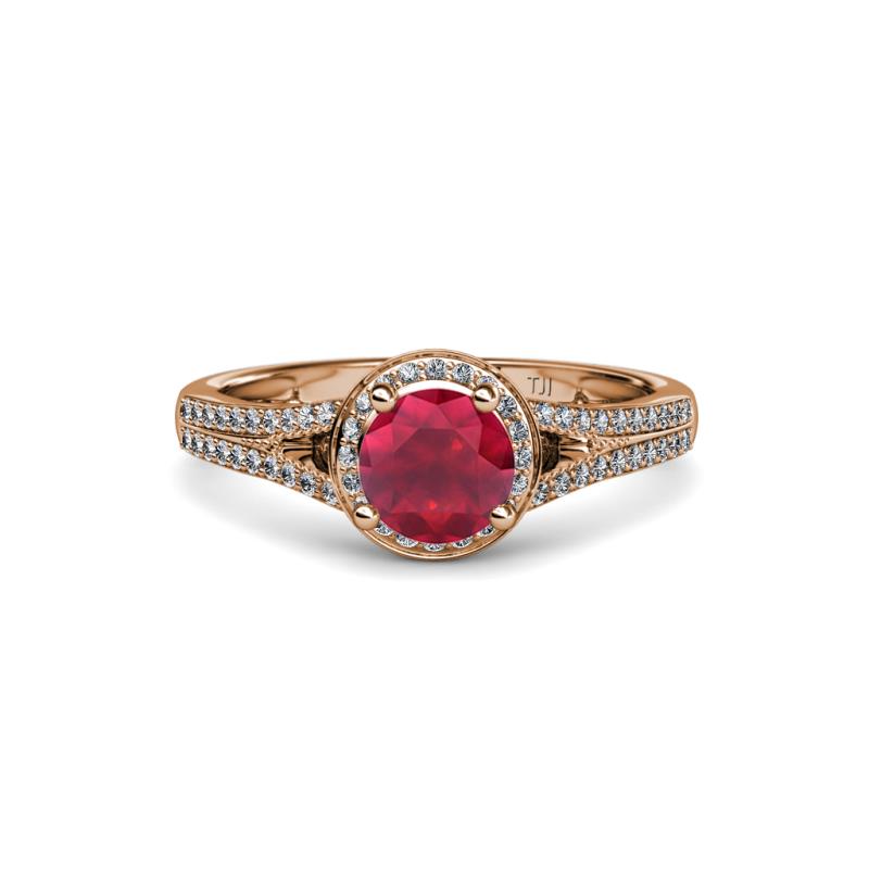 1 1/2 ctw Round Ruby and Diamond Womens Halo Engagement Ring 18K Rose Gold More Details ...
