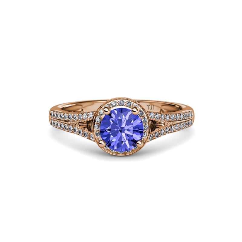 1 2/5 ctw Round Tanzanite and Diamond Womens Halo Engagement Ring 18K Rose Gold More Details ...