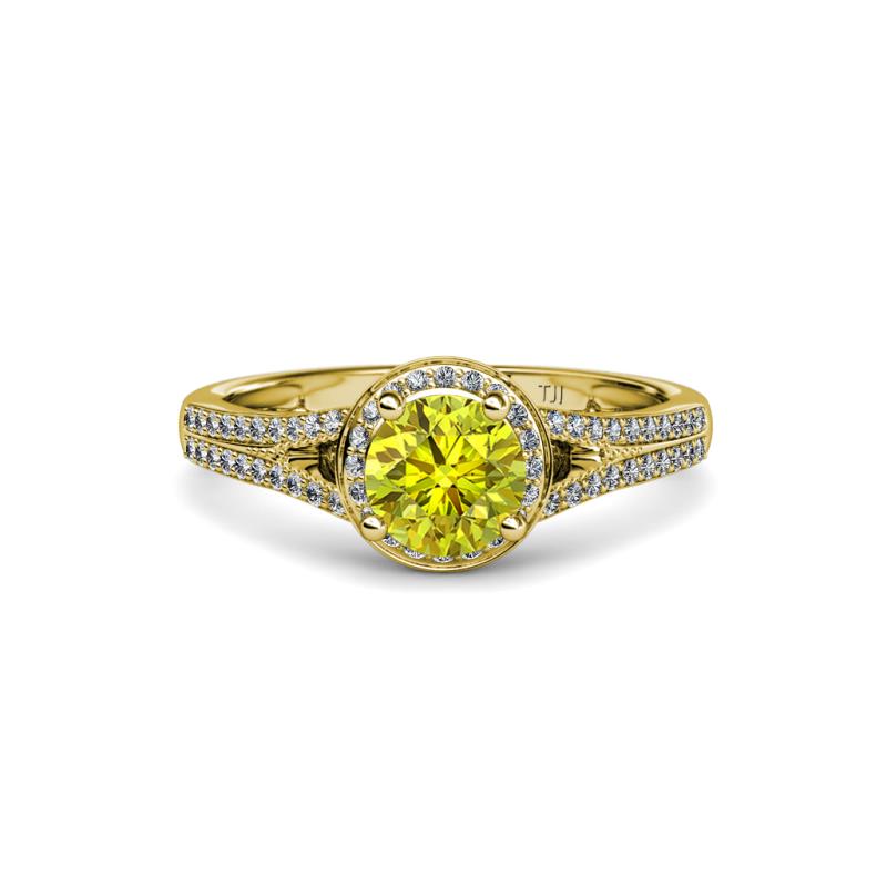 1 1/2 ctw Round Yellow and White Diamond Womens Halo Engagement Ring 14K Yellow Gold More Details ...