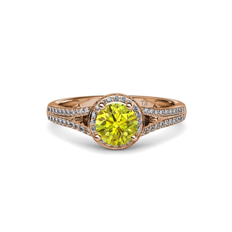 1 1/2 ctw Round Yellow and White Diamond Womens Halo Engagement Ring 14K Rose Gold More Details ...