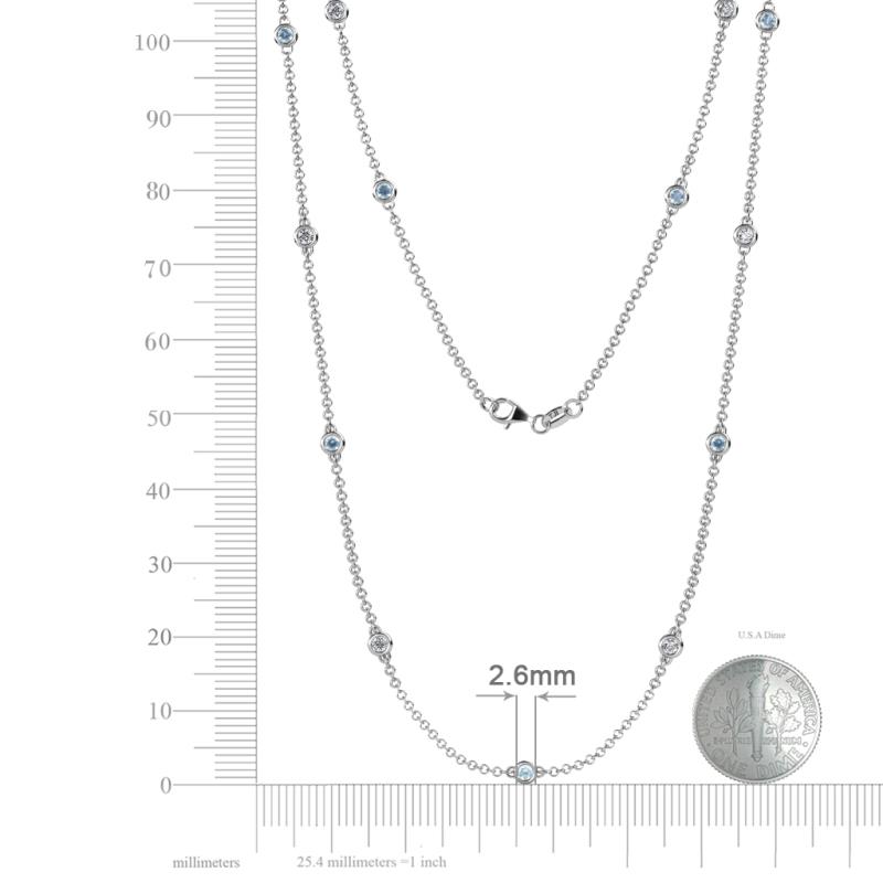 13 Stone Aquamarine and Lab Grown Diamond 3/4 ctw Womens Station Necklace 14K White Gold More Details ...