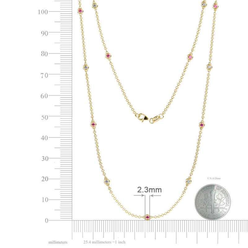 13 Stone Pink Sapphire and Lab Grown Diamond Womens Station Necklace 0.60 ctw 14K Yellow Gold More Details ...