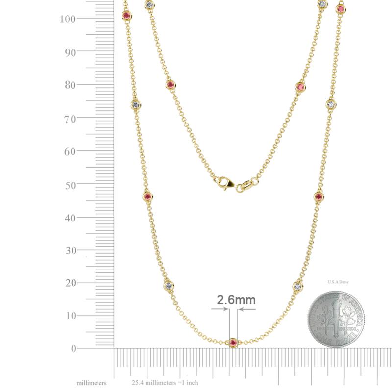 13 Stone Pink Tourmaline and Diamond 3/4 ctw Womens Station Necklace 14K Yellow Gold More Details ...