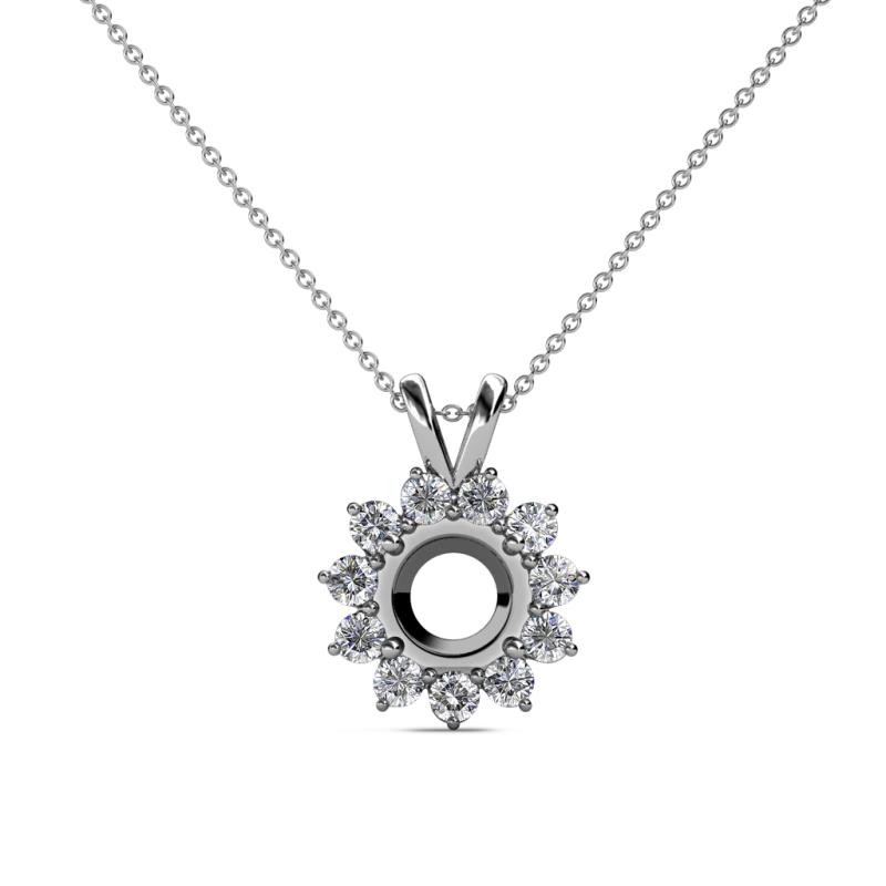 Wear this enthralling 0.20 ct tw Semi Mount Pendant which features halo of bright Round Diamond with Cable Chain along with beautiful side swirl design giving it a unique touch.