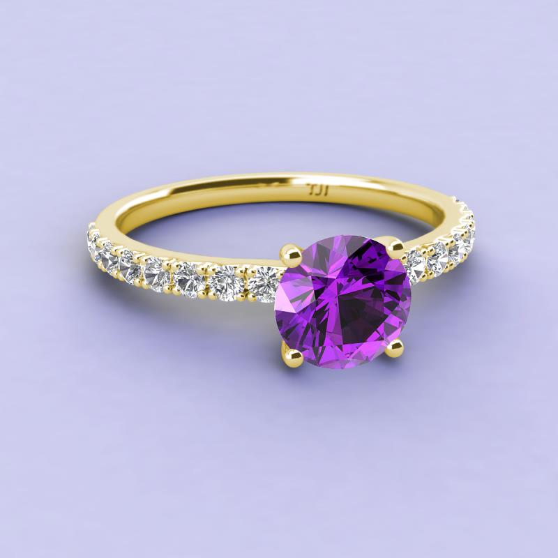 You can never go wrong with the enduring sophistication of a round-shaped stone. This refined Engagement Ring has center Round Amethyst, set on a Diamond accented band.