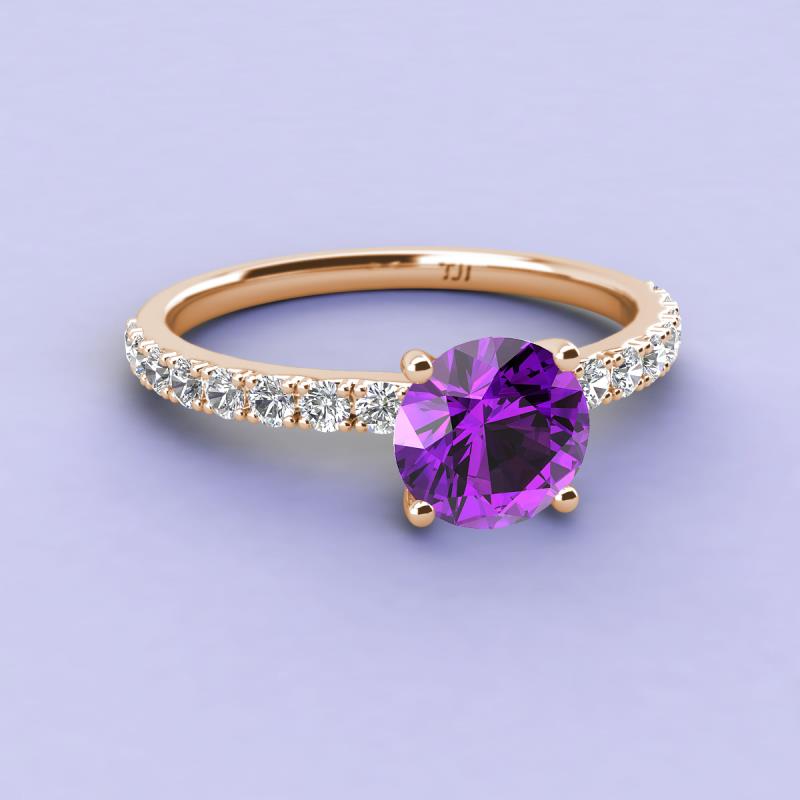Round Amethyst and Diamond 1 1/5 ctw Womens Engagement Ring 10K Rose Gold More Details ...