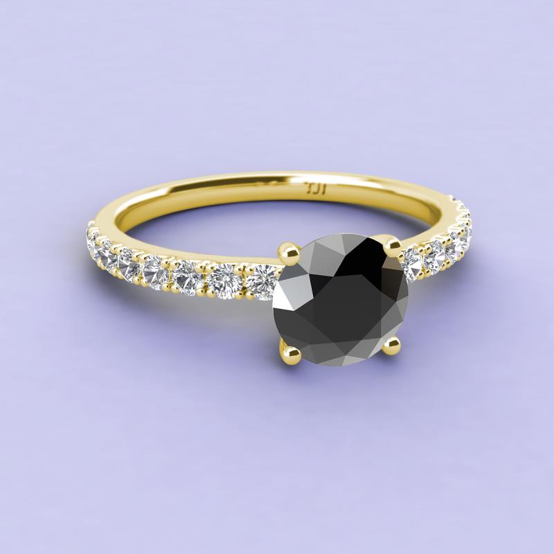 You can never go wrong with the enduring sophistication of a round-shaped stone. This refined Engagement Ring has center Round Black Diamond, set on a Diamond accented band.