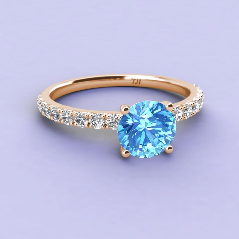 Round Blue Topaz and Diamond 1 1/4 ctw Womens Engagement Ring 14K Rose Gold More Details ...
