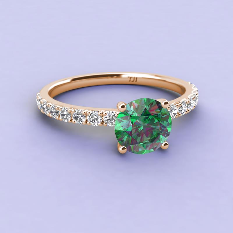 You can never go wrong with the enduring sophistication of a round-shaped stone. This refined Engagement Ring has center Round Lab Created Alexandrite, set on a Diamond accented band.