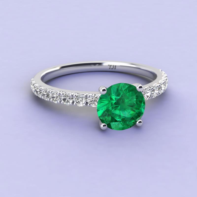 You can never go wrong with the enduring sophistication of a round-shaped stone. This refined Engagement Ring has center Round Emerald, set on a Diamond accented band.